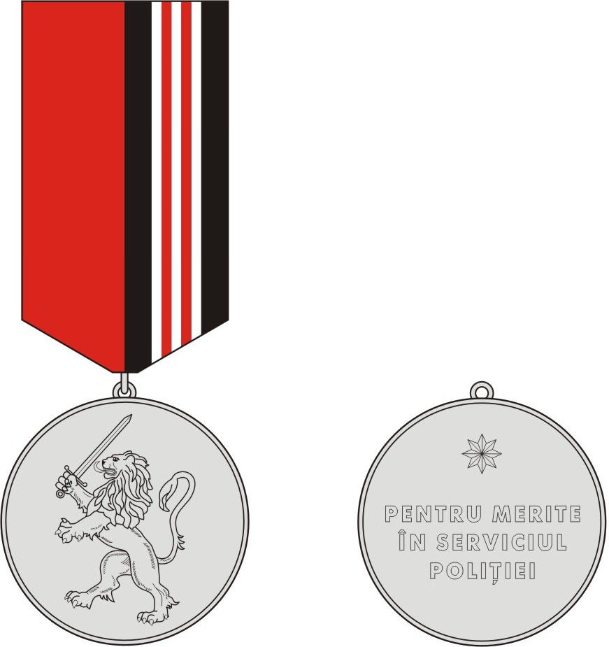 Medalia „Pentru merite în serviciul Poliției”, clasa I și II, se conferă prin ordinul șefului Inspectoratului General al Poliției poliţiştilor, funcţionarilor publici, salariaţilor civili şi personalului de deservire tehnică din cadrul subdiviziunilor IGP pentru contribuția adusă la consolidarea capacităților administrative și promovarea imaginii Poliției. | |